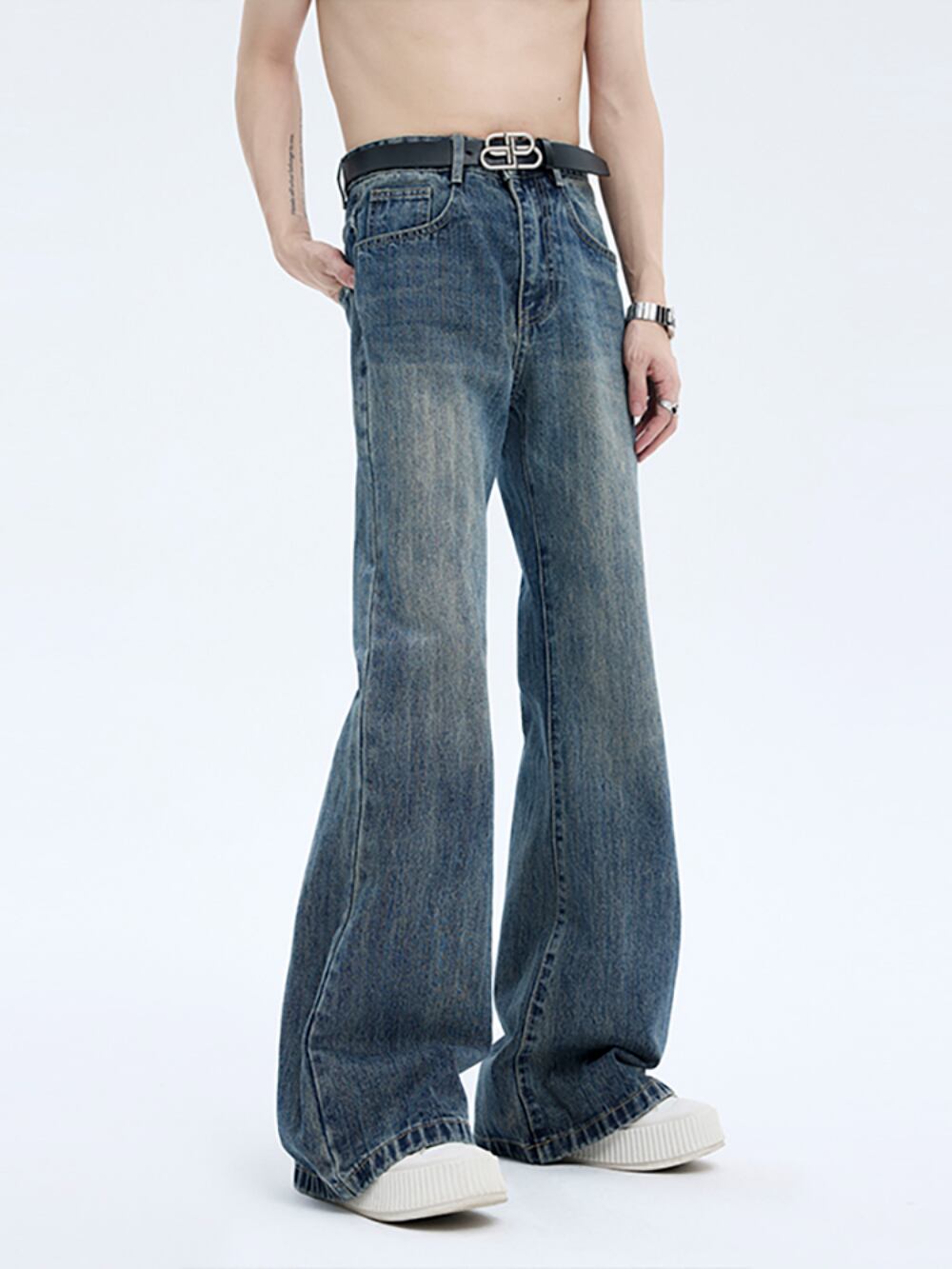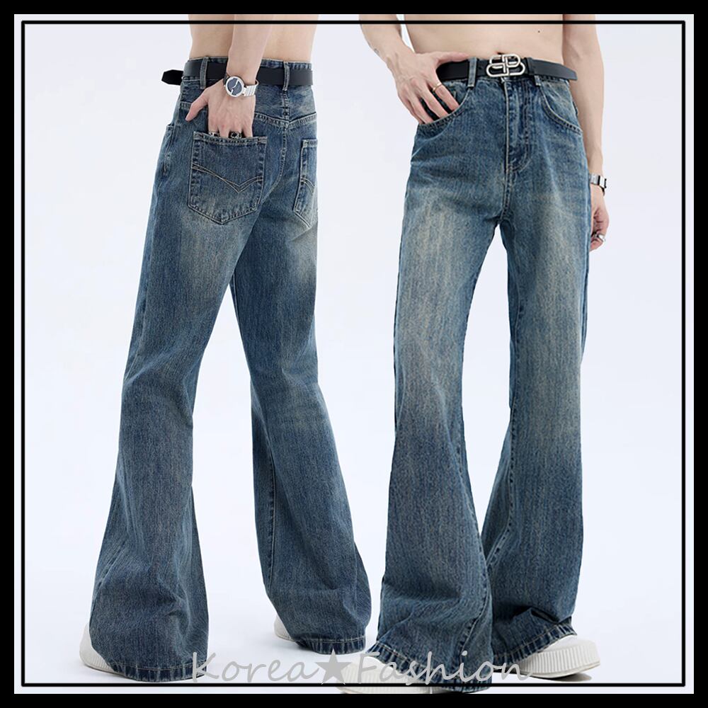 STARTEXCEEDENDフレアデニムパンツウォッシュドジーンズ男女兼用