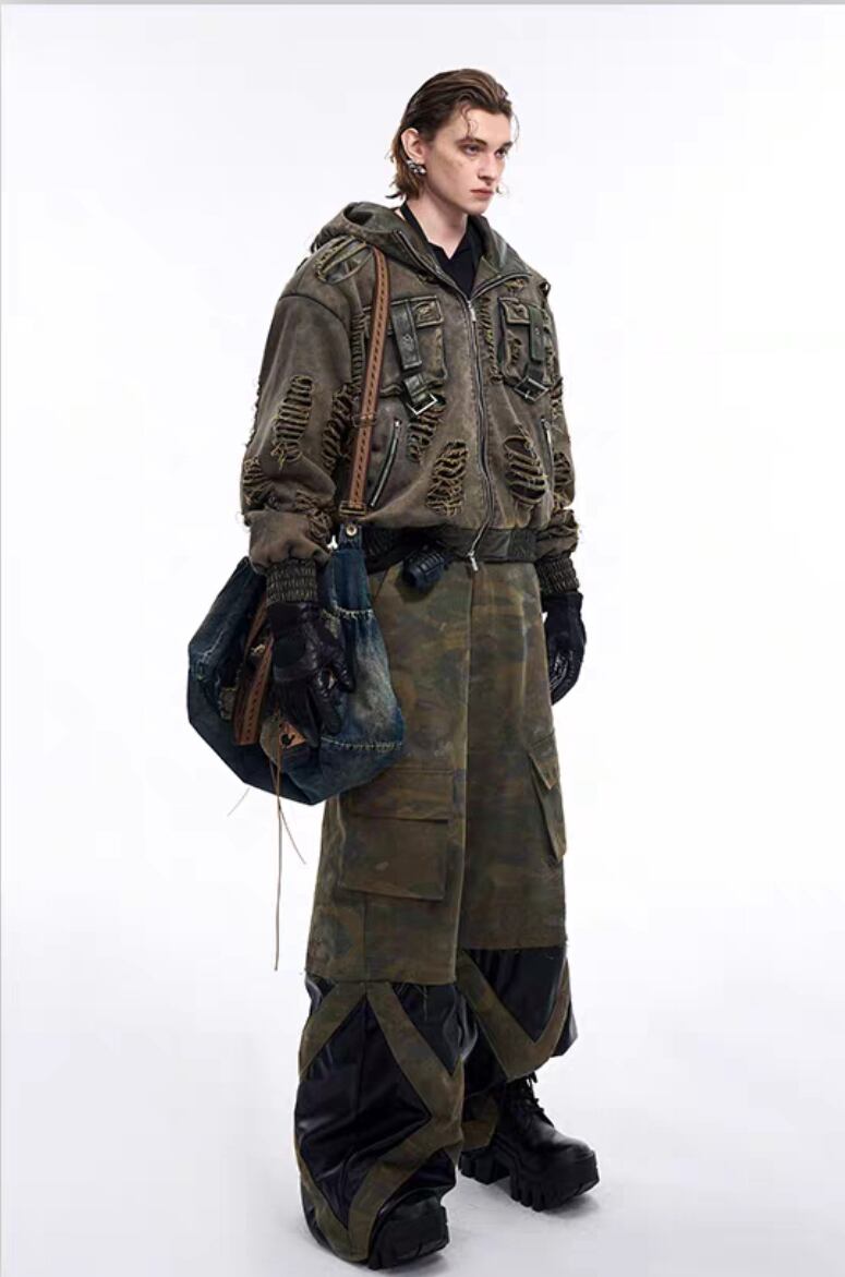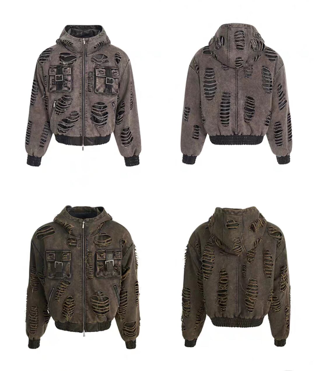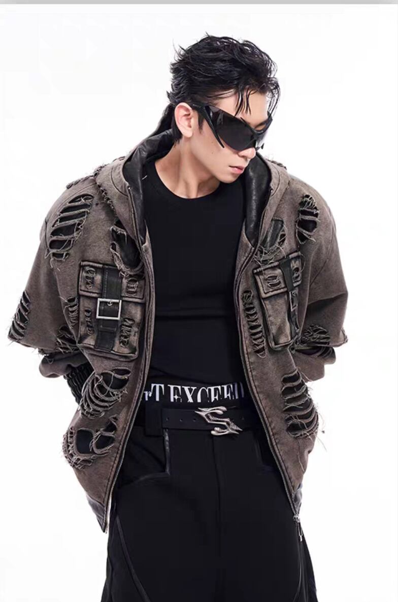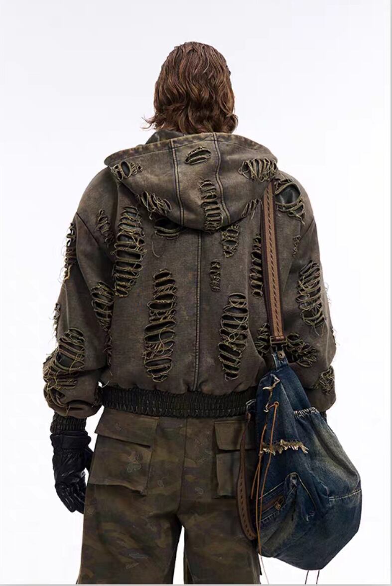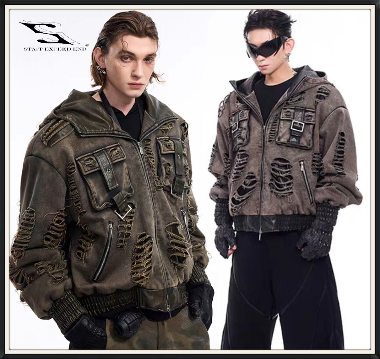 STAR TEXCEED END ダメージ フード付きスウェットジャケット 2色